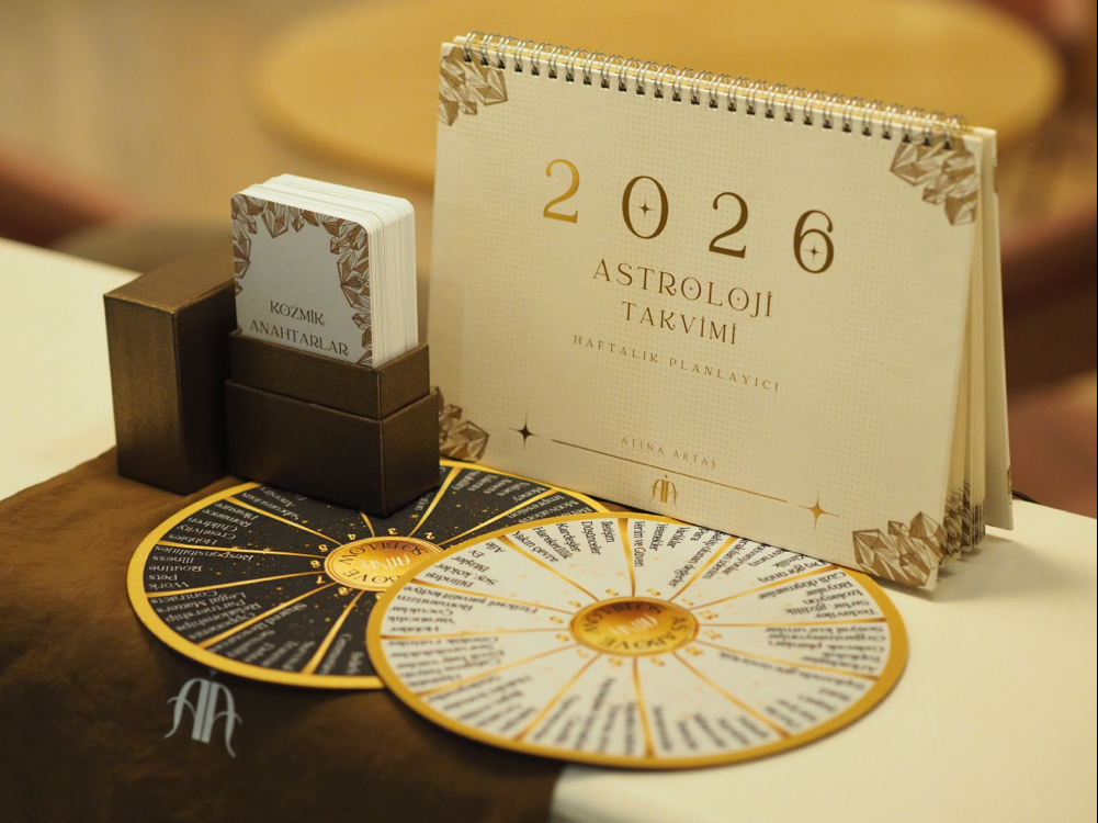 Tüm yılın transitleri, ay boşlukta takvimi, ay fazları, burç geçişleri gün gün önünüzde olacak. Hem size hem sevdiğinize hediye için satın alabilirsiniz.